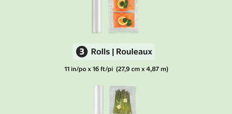 • שקיות FoodSaver זמינות במגוון גדלים, הן בטוחות לשימוש בבישול, במקפיא, ובמיקרוגל, ומה שהופך אותן לאפשרות נהדרת לשימור ולהכנת בשרים, פירות ים, ירקות ועוד